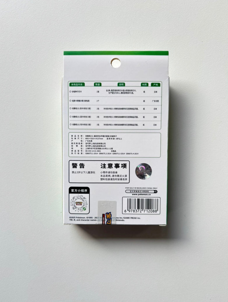 Pokemon Collect 151 Bulbasaur Partner Display Set Gift Box Simplified Chinese Display Card Box Sealed